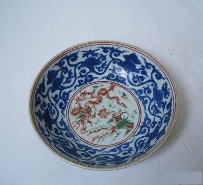 明晚期的嘉靖(1522—1566)、隆慶(1567—1572)、萬歷(1573—1620)三朝中,以嘉靖的時間最長,故此朝的器物發(fā)色不盡相同,早期的與正德器相近,發(fā)色灰藍(lán)。但此期獨具特色的是使用回青料。紋飾除傳統(tǒng)的仍流行外,道教色彩的紋飾大量增加,如云鶴、八仙、八卦、道家八寶等;ńM字為獨具特色的紋飾。此外還有嬰戲、高士、魚藻圖等。嬰戲圖的娃娃頭前額突出明顯。胎、釉均是小器細(xì)、大器粗。大器較多。八角形、四方形、六角形、上圓下方式葫蘆瓶等異型器多見。朝珠盒為此朝獨特器型?钭R“制”、“造”均用,以“制”字居多。器底心書“金錄大醮壇用”為祭祀用器。還有東書堂、東蘿館等堂名款。