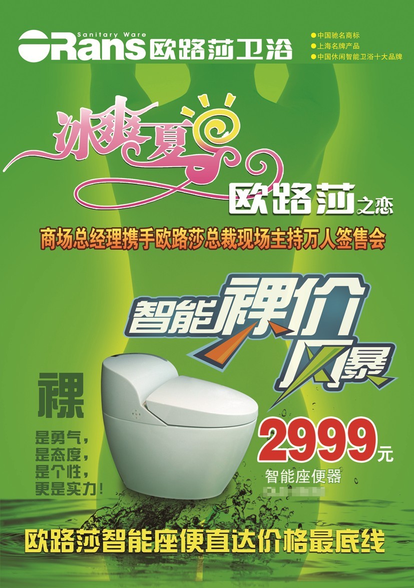 知名國際衛(wèi)浴品牌、中國十強(qiáng)衛(wèi)浴品牌,歐路莎衛(wèi)浴即將于8月6日在長沙舉行盛大的總裁萬人簽售回饋活動。屆時,歐路莎總裁將親臨現(xiàn)場主持簽售,居然之家以及紅星美凱龍兩家家居流通巨頭也將同時給予大力支持,當(dāng)日光顧歐路莎品牌專賣店的消費(fèi)者將會獲得多重優(yōu)惠,部分產(chǎn)品獨(dú)享“裸價”特權(quán)。歐路莎智能座便直達(dá)價格最底線,原價萬元豪華智能馬桶活動當(dāng)日實(shí)際尊享2999元,浴室家具、按摩浴缸、蒸汽淋浴房均推出勁爆優(yōu)惠價格,平民價訂購浴室“奢侈品”,幾千元便可搭配高檔衛(wèi)生間 。