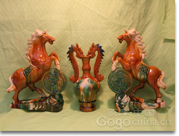 唐三彩種類很多,主要分為人物、動物和器物3種。人物有文臣、武將、貴婦、男僮、女仆、藝人、胡人等。動物有馬、駱駝、牛、羊、獅、虎等。器物有盛器、文房用具、室內(nèi)用具等。
