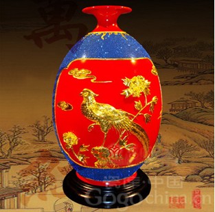 圖:鳳凰來儀漆線雕高檔橄欖瓶