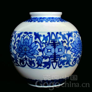 圖:丁華漢青花瓷福壽錢花瓶