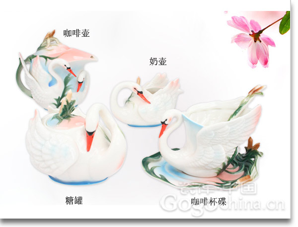 圖:商務禮品·16頭天鵝之戀骨瓷歐式咖啡具套裝