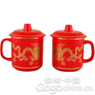 圖:紅瓷描金龍對杯
