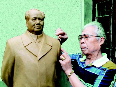 走進(jìn)中國(guó)陶瓷藝術(shù)大師雍起林的院子,筆者看到兩個(gè)用簡(jiǎn)易的石棉瓦和磚塊砌成的空間里,堆滿了正在晾干準(zhǔn)備燒制的毛主席陶瓷像。雍起林指著院里高高的火爐告訴筆者:“這就是燒制瓷像的火爐。一般情況下,燒制一個(gè)陶像要經(jīng)過二十多個(gè)小時(shí),我都要全程守候。” 鐘情雕塑毛主席像