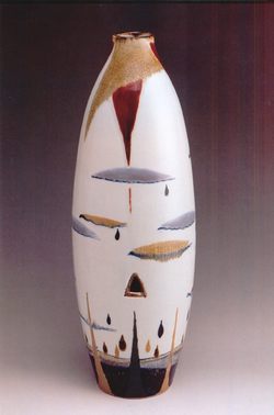 王愛紅 女,1967年4月生,山東煙臺(tái)人。畢業(yè)于景德鎮(zhèn)陶瓷學(xué)院美術(shù)系,現(xiàn)任該院美術(shù)系講師。擅長(zhǎng)釉下彩、綜合裝飾、陶藝,作品多次參加國內(nèi)外展覽,陶藝作品《硅鼓》入選中國當(dāng)代陶藝展,由文化部收藏,作品散見于《陶藝擷英》、《中國景德鎮(zhèn)陶瓷藝術(shù)》、《首屆中國現(xiàn)代陶藝展作品集》、《中國現(xiàn)代美術(shù)全集——陶瓷卷》。