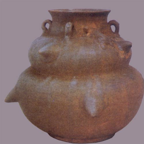 婺州窯始燒于東漢,盛于唐、宋,終于明代。主要產(chǎn)品有盤口壺、碗、盆、碟、水盂、盞托、瓶、谷倉、雞籠、水井等。
