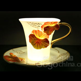 圖:浪漫三色堇琺瑯彩炫金咖啡杯