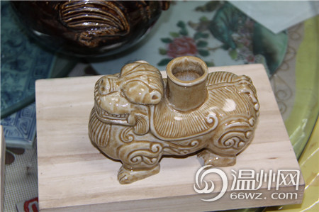 這是一件西晉甌窯青釉獅形燭臺仿品,其真品現(xiàn)珍藏于溫州博物館,距今有1700多年歷史。