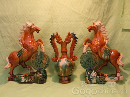 唐三彩是在洛陽邙山的唐代墓葬中發(fā)現(xiàn)的一種陪葬的冥器。自其出土時起就成了全世界矚目的焦點。唐三彩工藝禮品的輝煌在唐代貴族的陪葬典制中就可見一斑,現(xiàn)在國際上最為受歡迎的唐三彩工藝品為三彩馬,其中又以白三彩和黑三彩為最名貴。