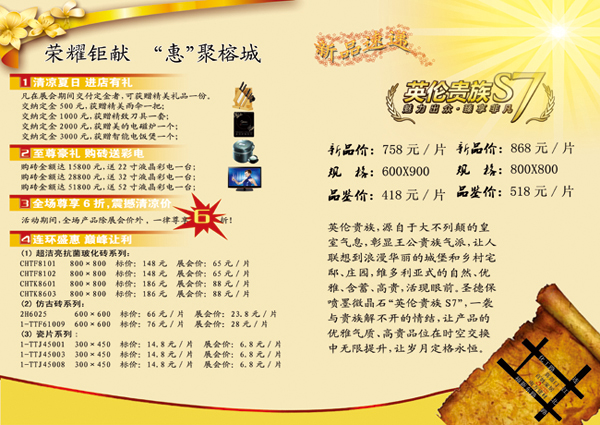 購磚金額達15800元,送22寸液晶彩電一臺;
