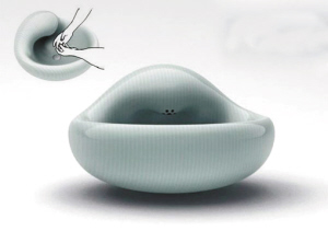 設計師將水龍頭和洗手盆設計為一體,造型采用了蝸牛的形態(tài),沒有任何的菱角,圓潤的造型讓這款產(chǎn)品更具親和力,這款洗手盆還可以根據(jù)水溫來改變自身的顏色,提醒用戶水的溫度,避免被燙傷。