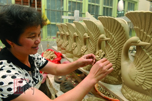 近年來(lái),我縣陶瓷企業(yè)通過(guò)引進(jìn)先進(jìn)設(shè)備,加大新產(chǎn)品開發(fā)力度,積極開拓國(guó)際市場(chǎng),迄今已有70多家出口陶瓷企業(yè)獲“日用陶瓷質(zhì)量許可證”和“輸美日 用陶瓷生產(chǎn)廠認(rèn)證”的雙認(rèn)證資格。目前,德化陶瓷出口形成了藝術(shù)性非常高的杯、盤、碗、罐、碟、瓶等多品種熱銷世界各地的格局,出口美國(guó)、日本、歐盟等 100多個(gè)國(guó)家和地區(qū)。圖為一出口企業(yè)員工正在雕制西洋工藝瓷。