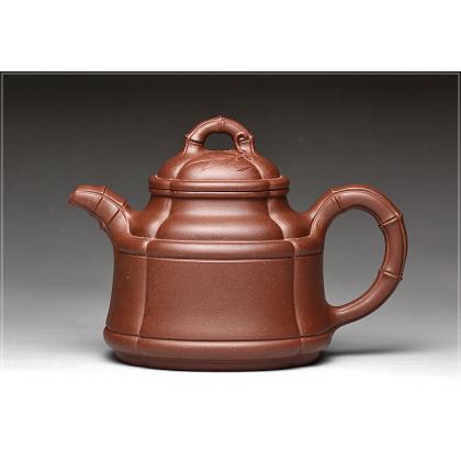 上圖所展示的這款同樣由朱峰創(chuàng)作的紫砂壺整器施藝嚴(yán)謹(jǐn)細(xì)致,注重細(xì)節(jié),壺把壺蓋壺身相輔相成,是難得的竹子造型的壺。據(jù)博寶藝術(shù)網(wǎng)的專家介紹說,明清的紫砂壺在造型方面有了很大的突破,極大地豐富了我國的紫砂壺的形式和內(nèi)涵。紫砂壺發(fā)展到今時(shí)今日,呈現(xiàn)出一派繁榮的景象,但是,也面臨著傳統(tǒng)手藝的失傳等問題。收藏紫砂壺?zé)o疑也是對(duì)紫砂壺的拯救做出貢獻(xiàn)。