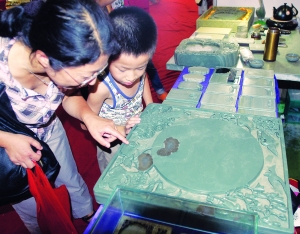 近年來,素有“御硯”之稱的松花石硯市場火爆,引起了市民的收藏?zé)。在民博?號展廳,吉林省松花石宮廷硯第一人李大平首次現(xiàn)身民博會,并在現(xiàn)場展示雕刻技藝,精湛的雕刻技法頓時讓小小的展位前擠滿了市民。