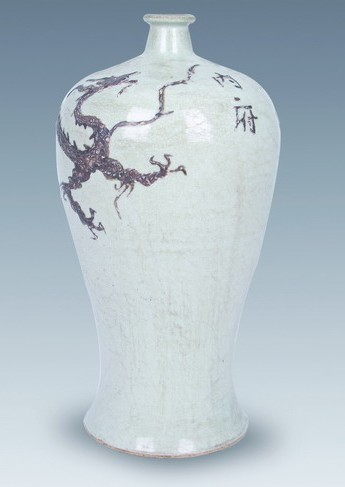 圖:明代白釉褐龍內(nèi)府梅瓶