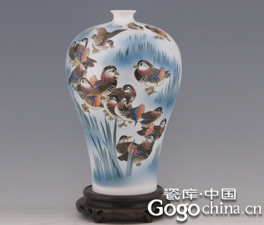 圖:同心同德手繪鴛鴦高檔陶瓷花瓶