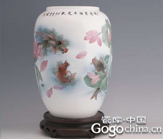 圖:李志丹大師鯉魚蓮花陶瓷藝術(shù)花瓶