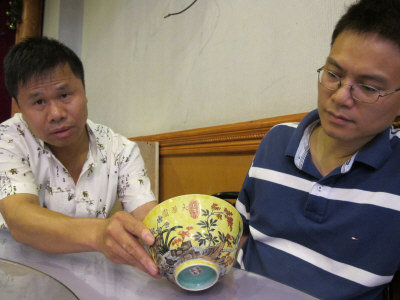華裔外賣郎獲顧客贈瓷器作為小費,或為真品。左為盧天發(fā),右為朱立業(yè)。