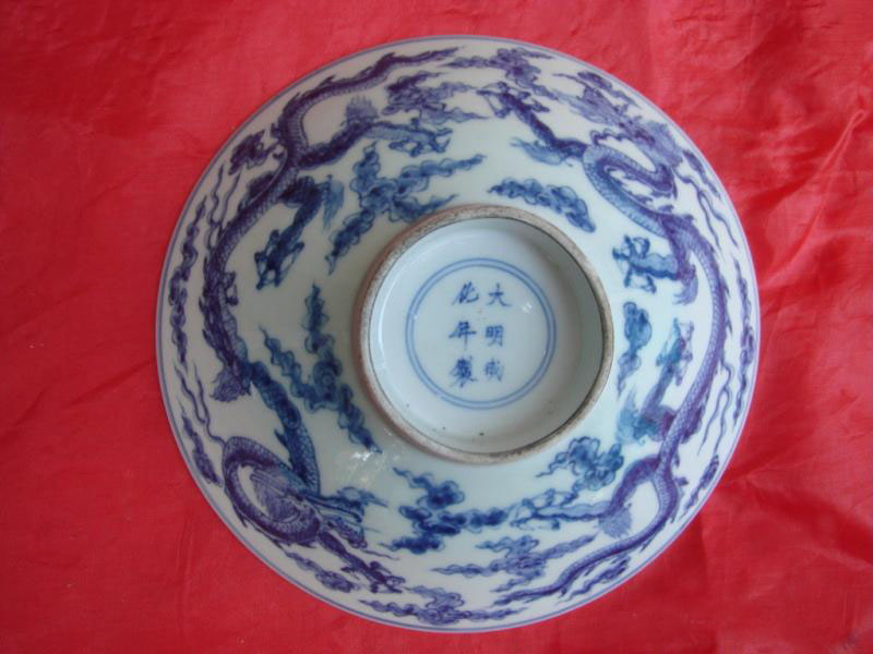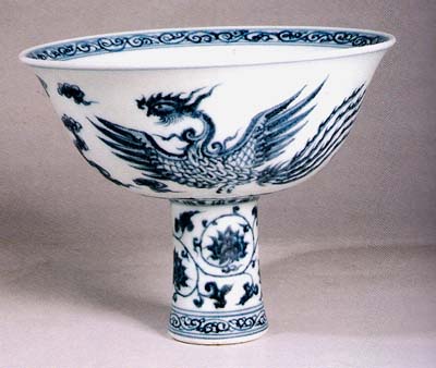 高足碗:也稱“靶碗”,有中空足封閉底印和不封底兩種?谖⑵,近底處豐滿,下承高足,造型與高足杯相似,略大。以明永樂紅釉、官德釉里紅、成化斗彩最為名貴。