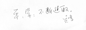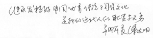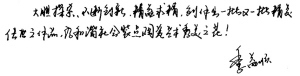 獲得大師稱號(hào)后,他欣然揮筆寫下了“藝無止境繼續(xù)攀登,此生無悔永遠(yuǎn)感恩”,以此表達(dá)自己的心聲。