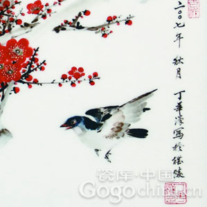 圖:丁華漢大師手繪釉下五彩瓷板畫梅花