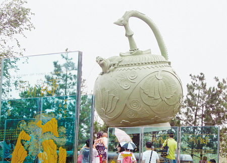 本次西安世園會(huì)不僅是一次園藝博覽會(huì),也是一次文化藝術(shù)博覽會(huì)。走進(jìn)世園會(huì)銅川園,除了美麗的園林藝術(shù)外,一只巨大的耀州瓷雕塑青釉倒流壺,充分展示了著名的耀州瓷的風(fēng)采。