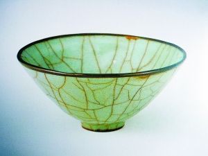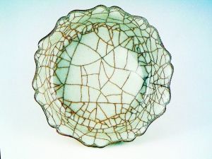 開片是瓷器釉面的一種自然開裂現(xiàn)象,胚、釉膨脹系數(shù)不同,焙燒后冷卻時釉層收縮率大,形成裂紋,是瓷器燒制過程中的一個缺點。當(dāng)人們掌握了開片的規(guī)律后,燒制出來的冰裂紋就成了一種特殊裝飾。北宋末期至南宋時期100多年間的宮廷御用瓷,汝、官、哥皆為開片瓷器。這些飲食起居之器源源不斷地送到皇室顯貴們手中。周先生認為,個別現(xiàn)象可以說是偶然,如此規(guī)模的相同傾向必然是有意為之的。同期的鈞窯、定窯以及唐代越窯和邢窯都不產(chǎn)冰裂紋瓷器,甚至南宋龍泉燒制的釉面光潔完整的青瓷、從實用效果來說也遠勝汝、官、哥。