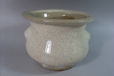 開片,為瓷器釉面的一種自然開裂現(xiàn)象。開裂的原因有兩種:一是成型時(shí)坯泥沿一定方向延伸,影響了分子的排列;二是坯、釉膨脹系數(shù)不同,焙燒后冷卻時(shí)釉層收縮率大。因此開裂原是瓷器燒制中的一個(gè)缺點(diǎn);但人們掌握了開裂的規(guī)律而制出的開片釉(即裂紋釉),變成為瓷器的一種特殊裝飾了。宋代的汝、官、哥窯都有這種產(chǎn)品。開片又稱冰裂紋, 按顏色分有鱔血、金絲鐵線、淺黃魚子紋,按形狀分有網(wǎng)形紋、梅花紋、細(xì)碎紋等。