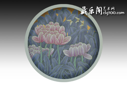 感悟其作品,于外在形式的美感也于內(nèi)在的氣韻,玉華金泥的另外一層意味則是內(nèi)在心靈世界美感的外化。張聞冰善用完滿的構(gòu)圖,作品沒(méi)有在留白之處,內(nèi)在的形式中間,構(gòu)造出最美最飽滿的圖案,形成了陶瓷藝術(shù)的一種圓滿的裝飾。張聞冰意在“凸”出他的內(nèi)心世界,如《姹紫嫣紅》等系列作品中,張聞冰有意識(shí)地安排了花與葉的穿插,《鎏金荷塘》中,延展的,帶有韻律的荷葉也是作者的意味化處理,將其畫(huà)面擴(kuò)大,擴(kuò)大到花蕊的零距離,于一花一世界中感悟荷塘的詩(shī)意與禪意。張聞冰的飽滿構(gòu)圖,則是一種色中見(jiàn)空的思想,是一種入世與出世的契合之地。在作品的構(gòu)圖法則與設(shè)色中,一切的外在形式即色象皆為空的境地,在有生命的形式中感悟禪意的美感與內(nèi)心的歡喜.張聞冰把握了屬于自身語(yǔ)意的表述方式,以風(fēng)格化的陶瓷語(yǔ)境表述,打破了以繪畫(huà)為陶瓷藝術(shù)的裝飾形式的審美主流,形成了一種婉約的帶有詩(shī)意的裝飾之風(fēng)。