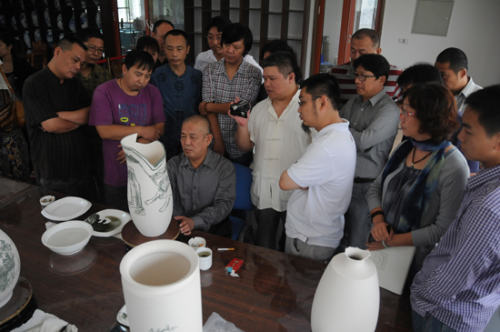 本網(wǎng)訊 在瓷器上揮毫作畫,現(xiàn)場燒制,是怎樣一種場景?8月20日,在2011山東首屆陶瓷藝術(shù)博覽會(huì)舉辦地--濟(jì)南園博園國際會(huì)展中心,張志民等藝術(shù)家為人們奉獻(xiàn)了一場精彩的藝術(shù)盛宴。