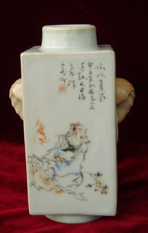 王琦 (1886--1933)為“珠山八友”之首,字碧珍,別號陶迷道人。祖籍安徽,后遷居江西新建縣。王琦幼年曾讀私塾,酷愛繪畫。父親是販鹽船戶,曾隨父在水上生活。王琦擺脫了錢的影響,轉(zhuǎn)師為乾隆間的“揚(yáng)州八怪”的黃慎。模仿黃慎寫意法畫衣紋,線條自由生動,運(yùn)用粉彩畫人物臉面、有立體感、富有新意。王琦用筆豪放、富于變化,所繪花鳥魚蟲各具特色。