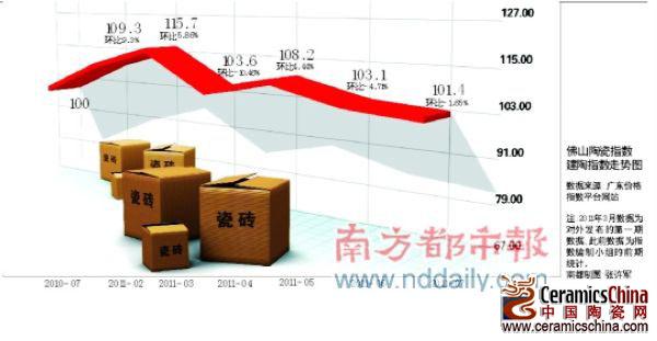 7月佛山陶瓷價(jià)格指數(shù)(下稱(chēng)“陶瓷指數(shù)”)中的建筑陶瓷系列指數(shù)(下稱(chēng)“建陶指數(shù)”)為101.4,環(huán)比跌幅1.65%。3月至今,佛山的建陶價(jià)格降了12.4%。