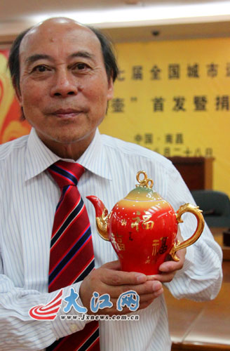 大江網(wǎng)訊 記者喻云亮報道:8月28日,第七屆全國城市運(yùn)動會(以下簡稱“七城會”)特許禮品“祈福瓷壺”首發(fā)儀式在南昌舉行。