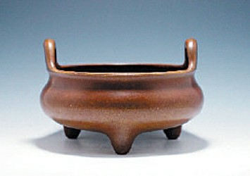 宣德爐的特征是銅質(zhì)優(yōu)良,造型古樸典雅,制作精細(xì),紋飾精致,工藝精湛。行家介紹說,器款在外底正中,為刀刻陽文楷書“大明宣德年制”六字,書法近似歐體,器款的“德”字心上省略一橫。這種“德”字心上一橫被省略的寫法始于漢代,漢碑、魏碑中的“德”字心上普遍省略一橫。唐代書法字帖的“德”字寫法既有省略一橫,也有保留一橫,如歐陽詢字帖的寫法省略一橫,顏真卿、柳公權(quán)字帖的寫法則保留一橫。元代趙孟頫字帖的“德”字寫法也省略一橫,明代繼續(xù)流行這種寫法。現(xiàn)在傳世的“大明宣德年制”六字楷書款的銅香爐很多,最常見的是橋耳鈍錐足圓形爐,它既有明代的仿品,也有清代的仿品。底款“大明宣德年制”的“德”字心上省略一橫的銅香爐是明代鑄造,保留一橫者則多數(shù)是清代所鑄。