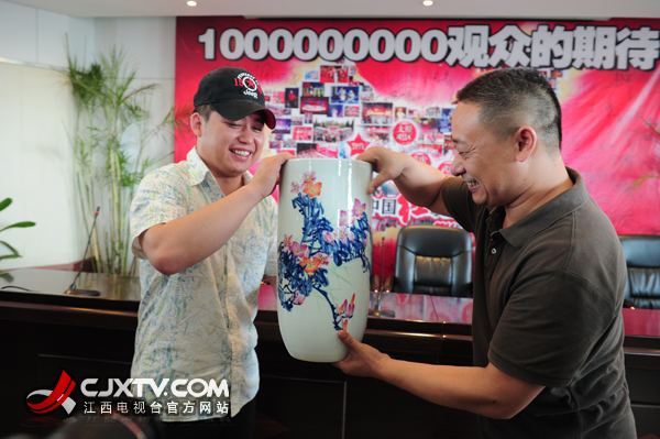景德鎮(zhèn)工藝大師余欣向冠軍劉少峰贈送陶瓷藝術(shù)品