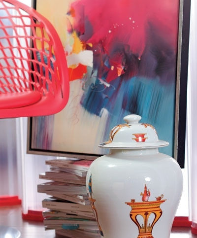 瓷器控對養(yǎng)眼的瓷質(zhì)花器通常都沒有免疫力,見到喜歡的,就會買回家。就如書架上這三個形態(tài)各異的瓷器花瓶,一個柔美靈秀、瓷質(zhì)的雕花惟妙惟肖,一個造型擬人、有些靜穆又帶點(diǎn)調(diào)侃,另一個則古著憨厚。風(fēng)格迥異卻雅俗共賞,瓷器控的博愛可見一斑。