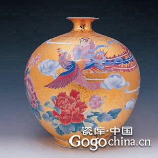 圖:國花牡丹鳳凰東方神韻描金高檔花瓶