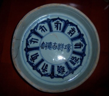 如廣東遂溪窯出土碗模外壁刻有“大德六年”款。元紫金釉貼花牡丹紋三足爐外底刻有“大德七年制”款。元鈞窯天藍釉紫紅斑盤上落有“大德八年”款。元定窯刻劃花魚紋盤外底刻“至元八年制公用”款,前五字直書,后二字橫書。元代白釉瓶上落有“大元國至元十九年九月十四日記耳”款。陜西銅川立地坡古窯址出土的殘瓷片上刻有“至元二十九年六月十四日”款。山西琉璃龍蓮花香爐上刻有“至大元年午汾陽琉璃寺詔伍塘城造”款。湖南衡東麻園窯址出土擂棒殘器上刻有“延佑四年”款。元代磁州窯白瓷枕的外底有墨書“至治二年前五月十五造磁齊居(君)仁”款。元龍泉窯青花瓷大花瓶上刻有“泰定四年丁卯歲仲伙吉日謹題”款。1979年江西豐城縣征集的出土于景德鎮(zhèn)的青花釉里紅樓閣式瓷倉上有青花料楷書“后至元戊寅五月二十三日”款;同時征集的出土于景德鎮(zhèn)的青花釉里紅塔式蓋罐頸部有一周青花楷書款為“大元至元戊寅六月壬寅吉置”。收藏于英國倫敦大維德基金會的元青花云龍紋象耳瓶頸部有青花料楷書“至正十一年四月良辰謹記”款。元磁州窯白釉褐花罐外壁釉下有褐彩書寫的“至正十一年七月二十九日”款。另外,元代瓷器上還有一種不書年號的干支紀年款,例如內蒙古呼和浩特出土的鈞窯雙耳獸足爐上落有“乙酉年九月十五小宋自造香爐一個”款。