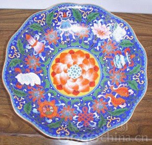 圖:景泰藍(lán)手工藝品果盤|藝術(shù)瓷盤|佛教用品貢盤