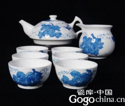 圖:全手工制作高檔茶具·青花手繪瓜藤茶具