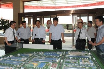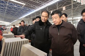內(nèi)黃縣長(zhǎng)王永志(右四)視察陶瓷產(chǎn)業(yè)園區(qū)