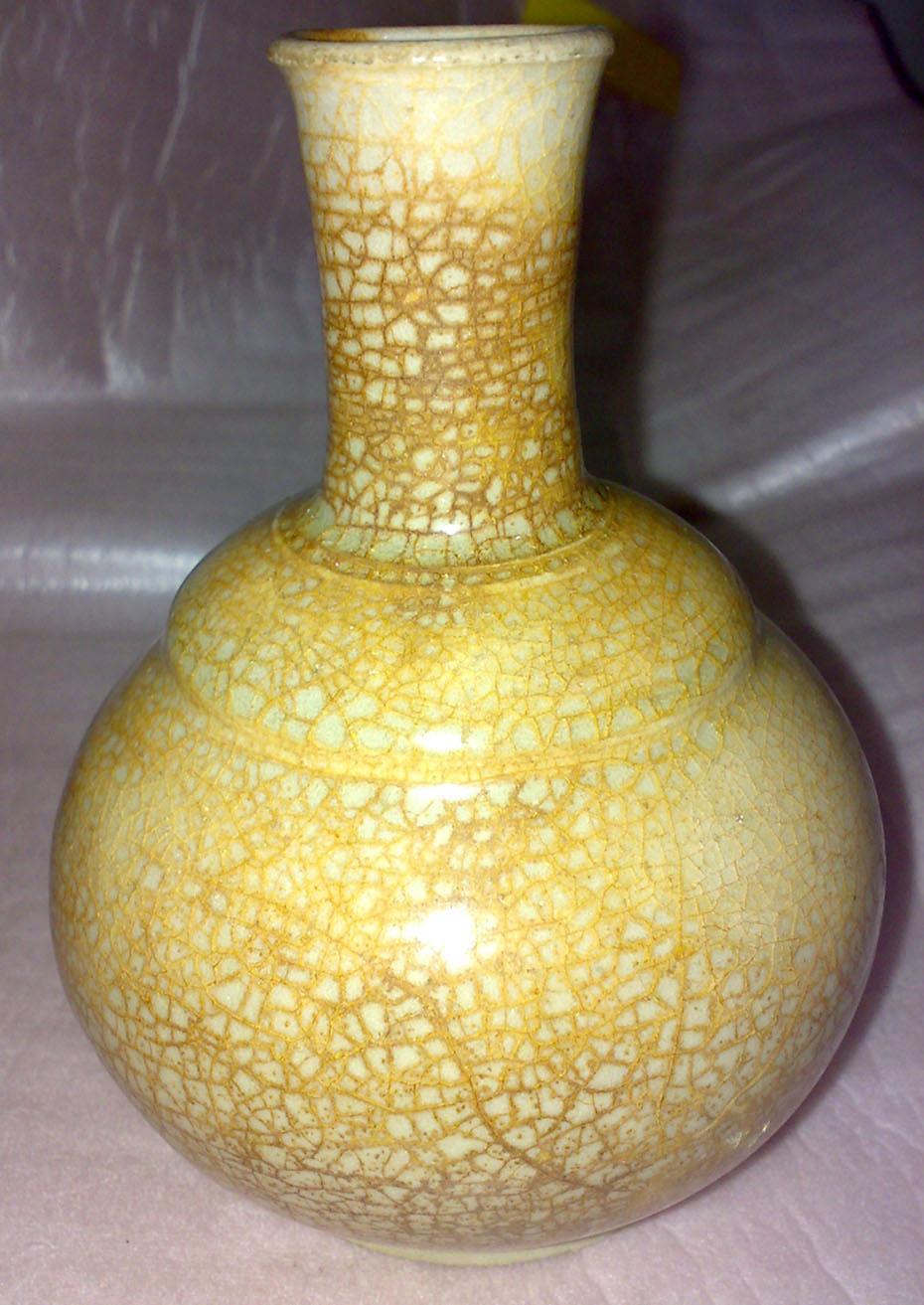 哥窯瓷器的特點(diǎn)是里外披釉,均勻光潔,晶瑩滋潤(rùn)。不僅扣之聲音清亮,而且造型挺拔大方,輪廓亦柔和流暢。屬于青瓷系的哥窯器,以釉色取勝。鑒定哥窯瓷主要從造型、胎骨、釉色等方面著眼。