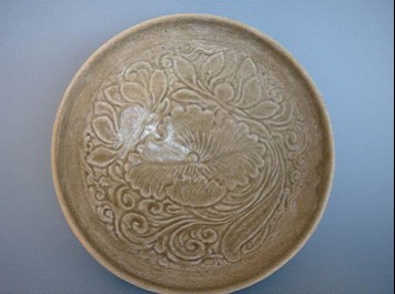 耀州窯:在今陜西銅川市,宋屬耀州,故名。始燒于唐代,北宋中期以后達(dá)鼎盛,終于元代。 燒制唐三彩、白瓷、青瓷、黑瓷和醬色釉瓷等品種,以青瓷最負(fù)盛名。其青瓷產(chǎn)品的特征和鑒定要領(lǐng)是:(1)胎色灰白,胎質(zhì)堅(jiān)硬,露胎處呈現(xiàn)醬黃色。(2)釉色青黃、深沉,釉層較厚,器物往往上部厚,下部薄,胎釉交接處呈姜黃色。此外,青釉釉面上有的出現(xiàn)小的露胎褐斑,為其它青瓷所不見。(3)器型豐富,盤 、碗、杯子、碟、瓶、壺、罐、爐、盒、香薰、注壺、注碗、盞、缽、燈、枕等均有,器物造型多變,有花瓣式、瓜棱式和多折式,外形美觀。其中力士爐頗具特色,爐身底座四周跪有力士。(4)唐末、五代青瓷采用劃花裝飾,紋飾題材多為水波與花草紋。(5)宋代裝飾技法主要是刻花、印花、劃花以及模印刻劃相間,以刻花、印花為主。北宋中期刻花發(fā)展成熟,刀法犀利,線條剛勁有力,刀痕有斜度,是宋代刻花技法中最優(yōu)秀者。北宋晚期的印花也很精美,布局嚴(yán)謹(jǐn),對(duì)稱勻衡。紋飾有纏枝蓮、把蓮、牡丹、纏枝菊、波浪、飛鶴、飛蛾、犀鶴、博古、海水游魚、蓮塘戲鴨和嬰戲圖案等,龍鳳紋則是宮廷瓷器專用題材。水波紋外一般刻劃以六角形邊線,水波中三魚多見。嬰戲圖案則以蕩秋千為主。宋代花紋裝飾特點(diǎn)是,早期于器面刻 劃簡(jiǎn)單的花瓣紋;中期則花紋滿布器面;到了晚期花紋線條大多纖巧。(6)金代產(chǎn)品瓷胎呈灰白色,青釉呈色偏黃。大量使用陶范印花,滿布器面的花紋逐漸減少,而在盤、碗內(nèi)壁,大量出現(xiàn)菊花、蓮花、水波、魚鴨紋等,構(gòu)圖簡(jiǎn)單,呈圓圈形。(7)元代產(chǎn)品器外一般施半釉,挖足淺,足較寬,似玉環(huán)底足,足內(nèi)心有乳 狀凸起。(8)晚唐、五代盤、碗一般采用支釘支燒,通體滿釉,足內(nèi)有3個(gè)支釘痕。宋代器物足端無(wú)釉,足內(nèi)有釉。金、元時(shí)期一般采用疊燒,盤、碗內(nèi)有疊燒痕,也有用一缽一器裝燒的,則僅足端無(wú)釉。