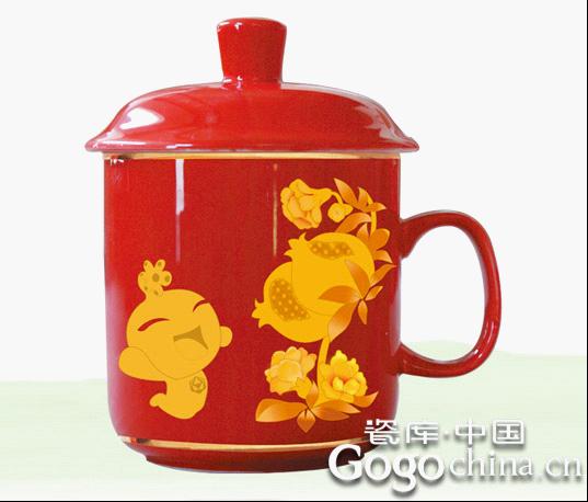 圖:世界園藝博覽會禮品·中國紅瓷跳躍長安陶瓷茶杯