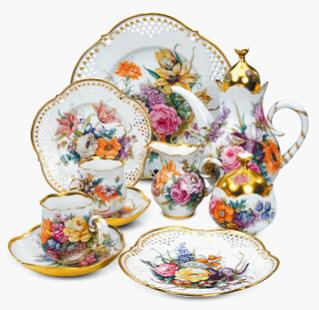 德國麥森高檔瓷器的每一位彩繪、造型師都必須經(jīng)過數(shù)十年的藝術(shù)與技術(shù)培養(yǎng),能在每件創(chuàng)作上融入不同時期的藝術(shù)風(fēng)格,展現(xiàn)近300年來的歐洲藝術(shù)史。舉例來說,名為“一千零一夜”的麥森瓷器作品,以豐富的人物做為創(chuàng)作主題,巧妙地刻畫出人物表情、眼神傳遞,以及情色的元素,整套瓷器價值100多萬元,值得玩家收藏;而另一套價值人民幣5萬多的“勿忘我黃玫瑰”也頗受歡迎,其中包括咖啡壺一只、咖啡杯碟六只、奶罐一只、糖罐一只、點心盤六只。