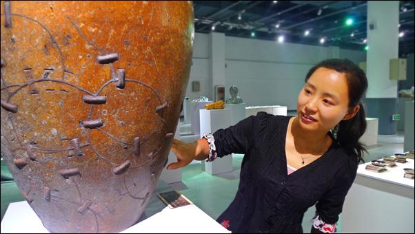 《和合》以“鋦”的手藝為主題,載體為中國(guó)傳統(tǒng)儲(chǔ)酒器皿。作者顧群業(yè)介紹說,無論是儲(chǔ)酒的器皿,還是“鋦”的工藝,都源于民間世俗的生活方式。鋦藝至少已有一千多年的歷史。俗話說“沒有金剛鉆別攬瓷器活”,這個(gè)“瓷器活”指的就是鋦藝。老一輩或許還有“鋦盆、鋦碗、鋦大缸”的記憶,但隨著時(shí)代經(jīng)濟(jì)發(fā)展,鋦藝已經(jīng)逐漸淡出了人們的生活。顧群業(yè)希望以此作品體現(xiàn)傳統(tǒng)文化的傳承、人文精神的物化、自然物象的重構(gòu)以及生態(tài)意識(shí)的警醒。