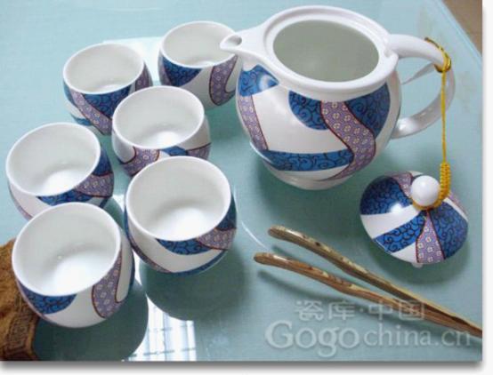 圖:商務(wù)禮品·臺灣定窯白瓷藍(lán)彩帶櫻花7頭功夫茶具