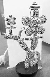 展會上的“中國陶瓷藝術(shù)館”非常有人氣,傳統(tǒng)的陶瓷現(xiàn)在也變得有點“潮”了。過去一直以經(jīng)營景德鎮(zhèn)大師作品為主業(yè)的璟通藝坊,這次不推大師推學(xué)者了,當(dāng)代陶瓷領(lǐng)軍人物周國禎教授《今天我生日》系列動物造型陶瓷、中國美院教授劉正的瓷版人物畫、清華大學(xué)美院白明和江西省陶瓷研究所藝術(shù)室主任白磊的抽象瓷藝作品,讓人們感受到千年古陶瓷的藝術(shù)新風(fēng)尚。