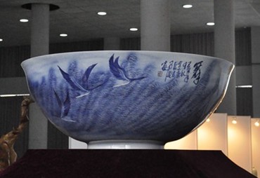 據(jù)悉此碗曾刷新了吉尼斯世界紀(jì)錄,成為迄今為止最大的釉下青花薄胎碗,2010年曾受邀在上海世博會(huì)上展示,市場(chǎng)估價(jià)兩千余萬(wàn)。薄胎瓷是景德鎮(zhèn)特有的傳統(tǒng)工藝,有“薄如紙、明如鏡、白如玉、聲如磬”的美譽(yù)。此碗系江西省工藝美術(shù)師、高級(jí)陶瓷美術(shù)師馬俊所繪。