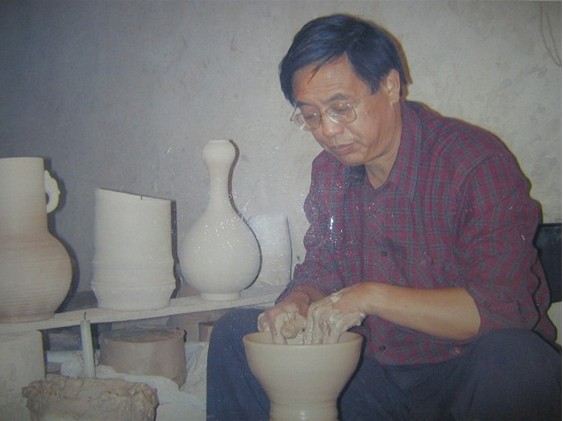 圖2:劉富安大師正在專注的地進(jìn)行鈞瓷創(chuàng)作